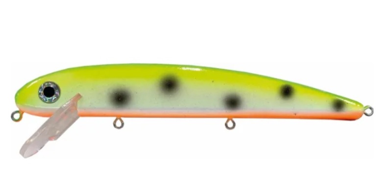 Detta är ett gäddbete med hög effektivitet under trolling efter gädda. Går också att kasta, men väger 128g och är 26cm långt, så rätt fiskespö krävs.