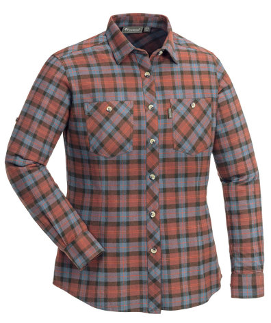 Pinewood Felicia Skjorta D.Copper/Storm Blue är en rutig feminin skogsarbetarskjorta i 100% bomull. Två bröstfickor med knappar. Hank i ärmen till att fästa upprullade ärmar.