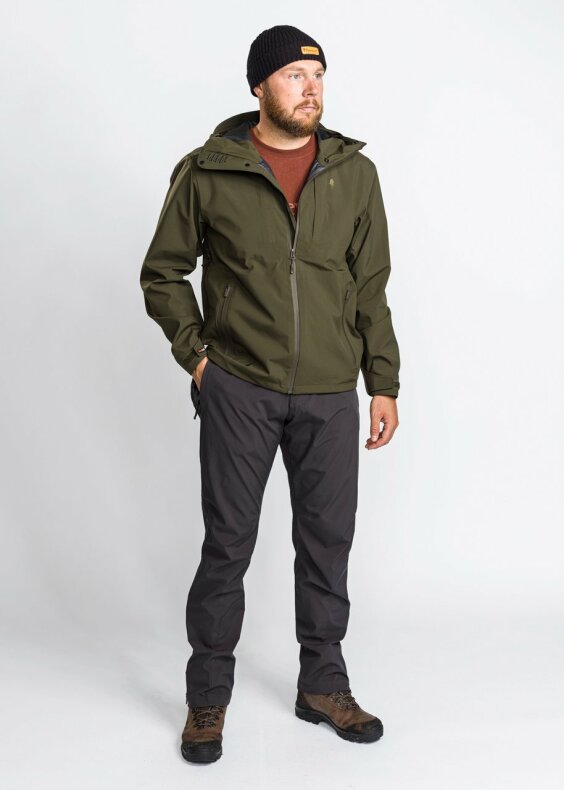 Vind- och vattentät 3-lagers lättviktsbyxa. Något vidare modell så den kan med fördel användas som överdragsbyxa. Fullt öppningsbar dragkedja längst båda sidorna. Tejpade sömmar och vattenavvisande dragkedjor. Membran med mycket god andningsförmåga och högvattenpelare. Tryckknapp samt kardborreband nedtill. Behandlad med ekologisk impregnering-Bionic Finish® Eco för extra vattenavvisande egenskaper.