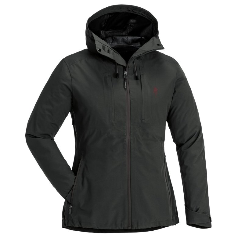 En extremt vattentålig, lätt, vind- och vattentät jacka. Hög krage med genomtänkta ventilationshål. Fast, reglerbar huva och tejpade sömmar. En stretchig friluftsjacka som passar utmärkt likväl på fritiden som till och från jobbet. En jacka som klarar av riktigt regniga och blåsiga dagar. Jackan har en vattenavvisande envägs dragkedja, dubbla bröstfickor, två handfickor, samtliga med dragkedja. På sidorna finns det ventilationsöppningar. Feminint skuren. Reglerbar nertill med stroppar. Ärmslut reglerbara med kardborreband. 100% polyester.