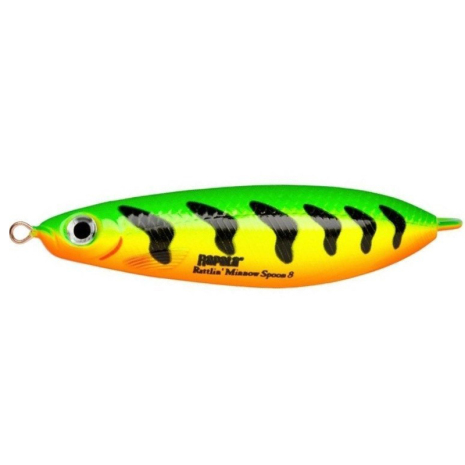 Rapala Minnow Spoon Rattlin är en ny modell av den klassiska Minnow Spoon. Det som skiljer är att Rapala Rattlin' Minnow Spoon har en inbyggd rasselkammare för att reta gallfeber på gäddorna.