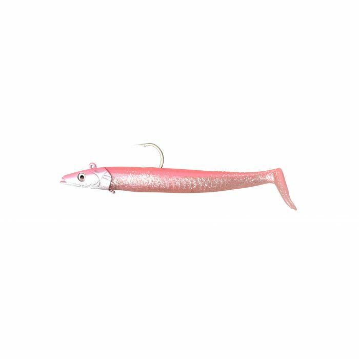 Savage Gear Sandeel 65g Pink Glitter är en rosa jigg eller gummibete med en superrealistisk immitation av en sandål.
