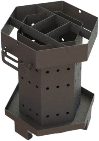 Till Skärgårdsbrännaren rekommenderas 8 mm träpellets. Skärgårdsbrännaren brinner i 3,5 timmar på en full laddning. Löstagbara handtag samt hål för infästning av bärhandtag.