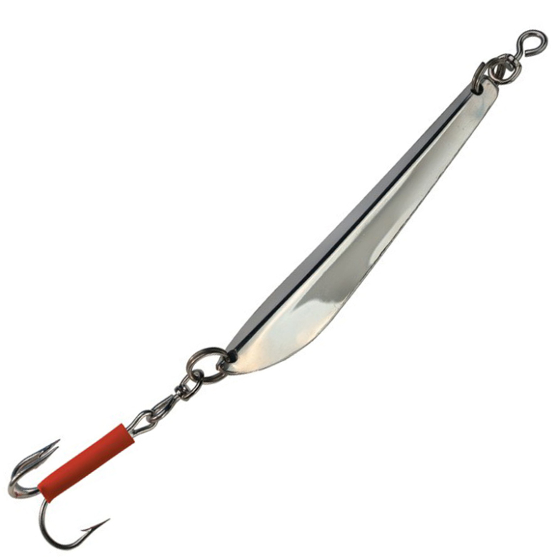 Sölvkroken Svenskepilk har en stark och rejäl trekrok och på kroken finns en röd gummislang som fungerar som huggpunkt för fisken. Svenskepilk är rostfri och glänser bra under vattnet och skapar effekter för både ljus och ljud.