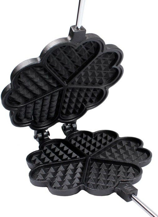 Våffeljärn i gjutjärn med långt skaft och trähandtag