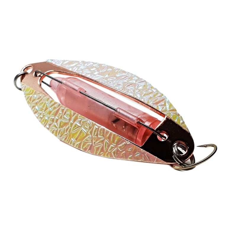 Stoxdal Alpina-blinken 3 är ett rödingblänke med en röd dubbelblink. Kopparfärgad med tre olika färger på reflextejpen.