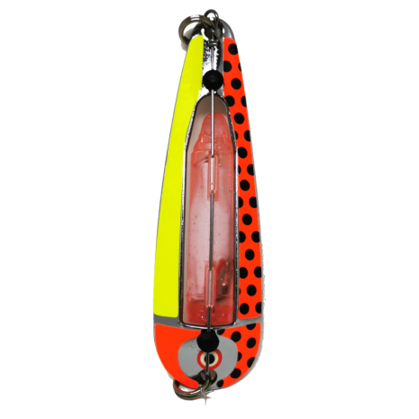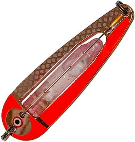 Stoxdal Blänke XNåjden med blink i färgen röd. Pimpelblänket lockar effektivt till sig ädelfisk som öring, röding och regnbåge. Fungerar också utmärkt till abborre.