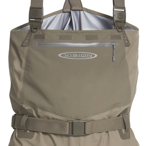 Koski vadarna är tillverkad av ett mjukt och bekvämt vattentätt 4-lagers andningsbart F4™ tyg. Från låren och ner så har vadarna ett kraftigare material. Den stora framfickan är vattenavstötande och har en YKK AquaGuard dragkedja. Det finns tillbehörsfästen på båda sidor av fickan så att du kan fästa många användbara verktyg. Du får även med en vattentät TPU-ficka som är avtagbar och perfekt för din telefon och bilnycklar. TPU-fickan kan enkelt fästas på vadarna (se bild).