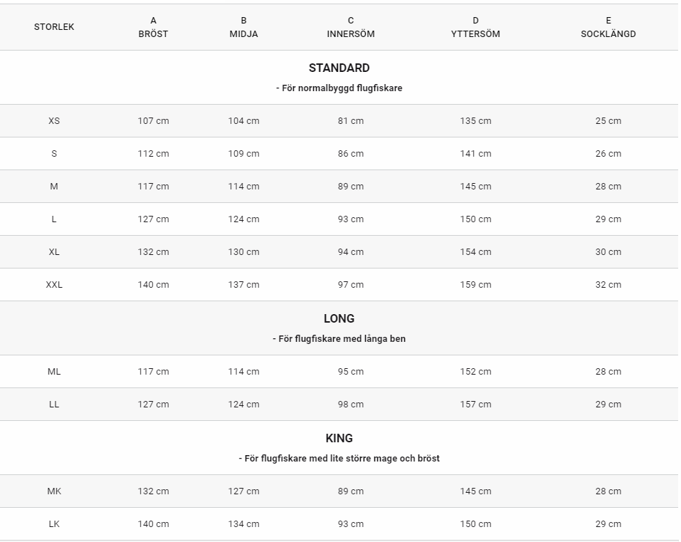 Koski vadarna finns nu med liten socka som passar perfekt för kvinnor eller dig med små fötter. Storlekarna: SS (small vadare med socka 36-38), SM (small vadare med socka 38-40) och SMS är Koski Small med kortare ben med en socka 36-38.