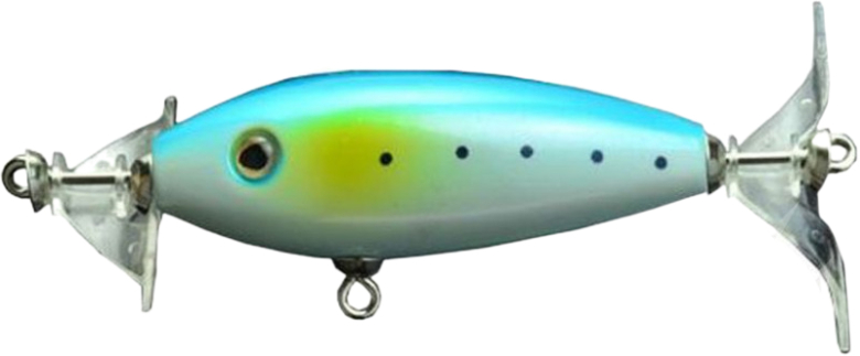 Wiggler Spraken 15gr Light Blue är ett ytbete med propeller fram och bak för extra effekt då du fiskar gädda och abborre. Ytbetet väcker de slöaste fiskarna och är ett vi varmt kan rekommendera för roligt och adrenalinfyllt fiske.